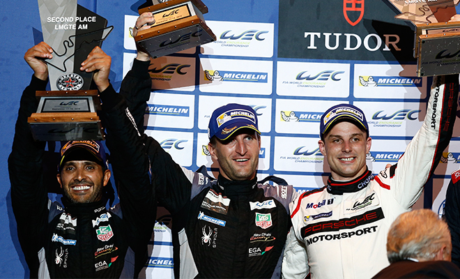 Austin – Auf dem Circuit of the Americas in Austin/Texas ist bei Abu Dhabi Proton Racing der Knoten geplatzt. In dem spannenden Sechsstundenrennen, das bei Temperaturen von fast 35 Grad Celsius ausgetragen wurde, kamen Christian Ried, Earl Bamber und Khaled Al Qubaisi im Porsche 911 RSR mit der Startnummer 88 nach einer tollen Aufholjagd als Zweite der Klasse GTE-Am ins Ziel. Damit schafften sie, obwohl sie nach dem verpassten Qualifying von ganz hinten starten mussten, erstmals in dieser Saison den Sprung aufs Podium. Auch für Dempsey Proton Racing lief im fünften Saisonrennen der Sportwagen-Weltmeisterschaft WEC anfangs alles nach Plan. Doch obwohl der 911 RSR mit der Startnummer 77 lange in Führung lag, blieb am Ende nur der undankbare vierte Platz.